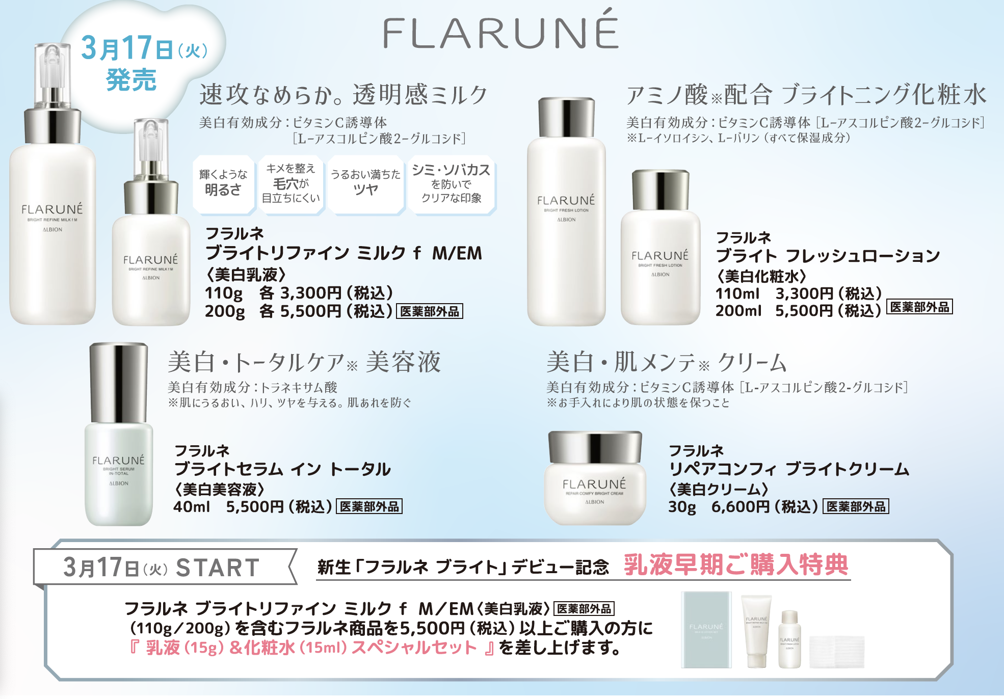 3月17日(火)発売!新生「フラルネ ブライト」で、瞬時に、なめらかな透明感。